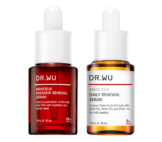 想要美白有感? 只用美白精華並不足夠!必須「先煥膚後美白」,由外而內暢通毛孔,去除令肌膚蠟黃暗沉的老廢角質,美白精華才能直達肌底,發揮功效。 DRWU美白新概念 STEP 1 - 肌面去黃提亮 杏仁酸溫和煥膚精華8%,黃金比例三重酸 杏仁酸溫和煥膚精華18%,黃金濃度18% 針對淺、中、深角質層全面作用,疏通毛孔、清除粉刺痘痘。去除肌面的老廢角質,肌膚的白自然能展現出來,上妝也會更貼服、不卡粉。 STEP 2 - 肌底美白透光...