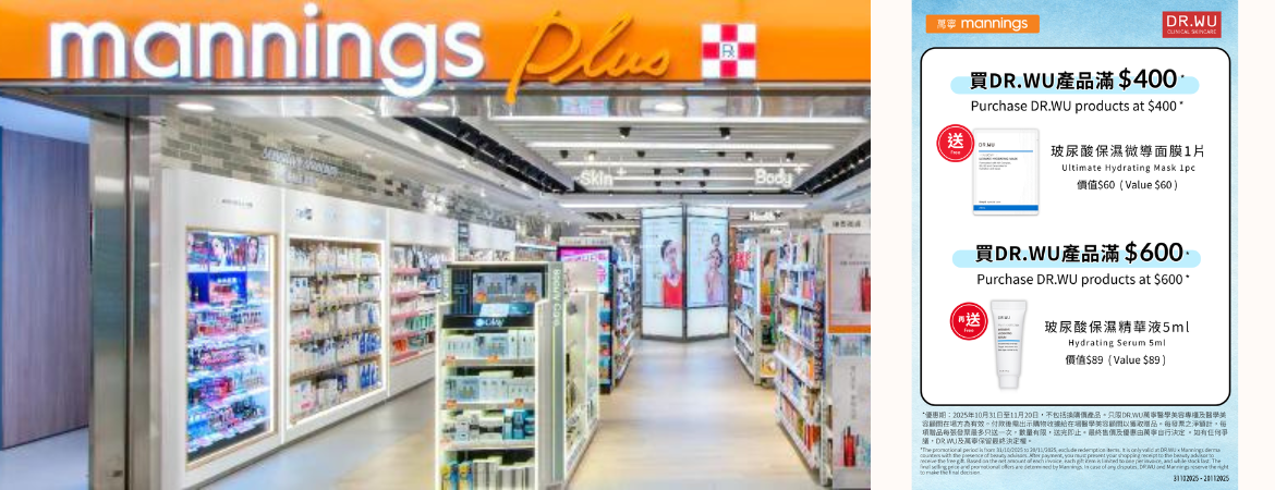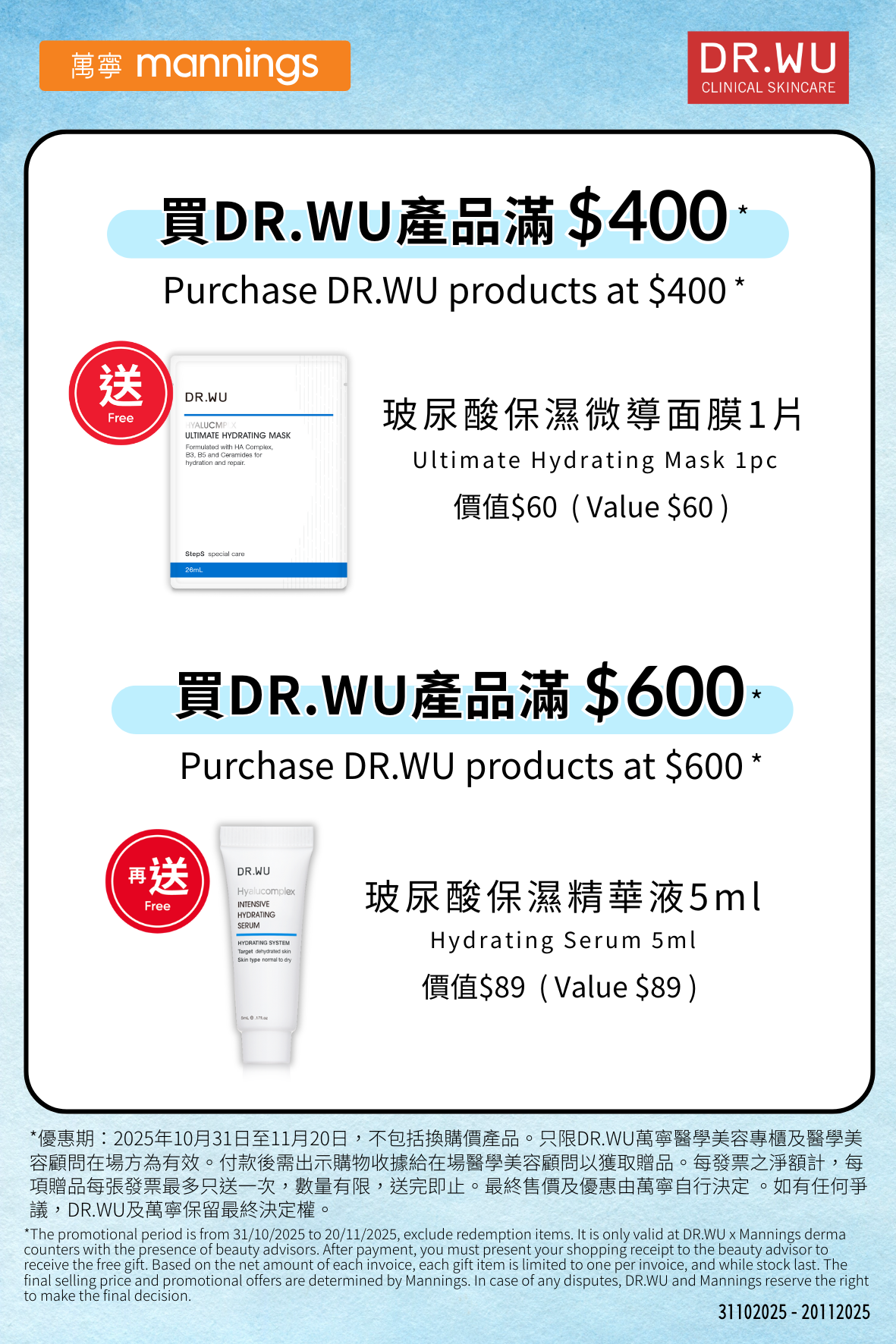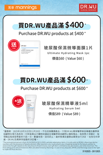 即日起至11月20日~以下指定萬寧DR.WU專櫃限定加碼優惠